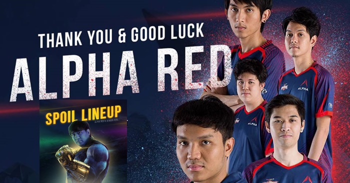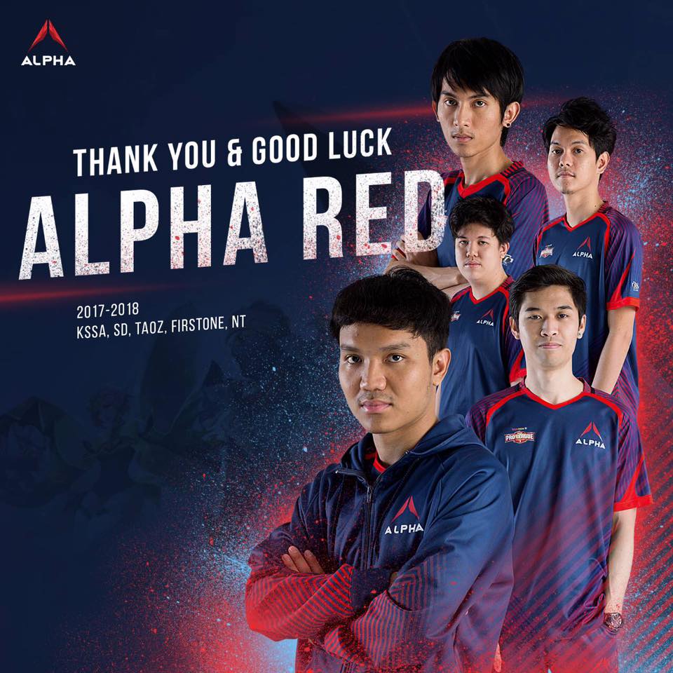 ประกาศผ่านทาแฟนเพจ ALPHA Pro Teams สดๆ ร้อนๆ กับการแยกทางของ 5 ผู้เล่นคนสำคัญ KSSA,SD,TAOZ,FIRSTONE และ NT ที่รวมทีมกันมาตั้งแต่ปี 2017 ก็มาสิ้นสุดลงก่อนที่ RoV Pro League Season 3 จะเริ่มขึ้น หลังจากที่ทาง  ALPHA Pro Teams ได้มีการปล่อยภาพผู้จัดการทีมอย่าง TnK เกี่ยวกับการ Spoil LineUp ใหม่ของทีม ซึ่งหลายคนก็ไม่คิดว่าการดีดนิ้วของ TnK นั้นจะทำให้ผู้เล่นหลัก 5 คน ถึงกับต้องไปเป็นฝุ่นแบบนี้