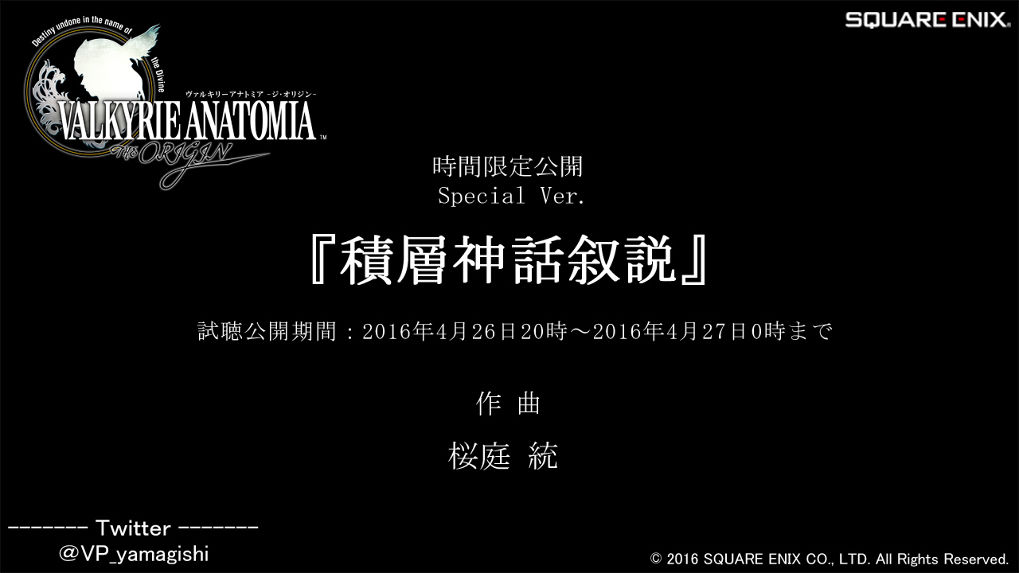 นอกจากนี้ยังประกาศอีกว่าจะเปิดเพลง BGM Special Version ที่ Motoi Sakuraba เป็นผู้บรรเลงและ remix เพลงใหม่ให้สามารถรับฟังได้ที่เว็บไซต์หลัก ตั้งแต่เวลา 2 ทุ่มวันนี้จนถึงเวลาเที่ยงคืนเท่านั้น!! ใครที่สนใจก็กดไปฟังไดทีเว็บไซต์หลัก *นี่* เลยค่ะ