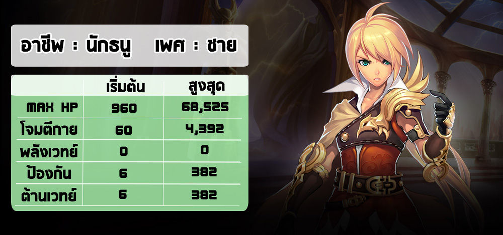 นักธนู : อาชีพสายโจมตีกายภาพ ความสามารถหลากหลาย ทั้งบัฟโจมตี ดีบัฟป้องกัน และอมตะในระยะสั้น