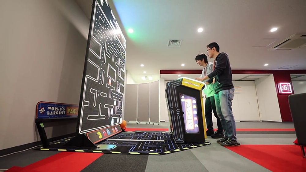 "โซนพักผ่อนของเหล่าพนักงาน ที่ในห้องนี้จะมีตู้เกมต่างๆ มากมาย รวมไปถึง Pacman จอยักษ์แบบนี้ให้เล่นอีกด้วย"