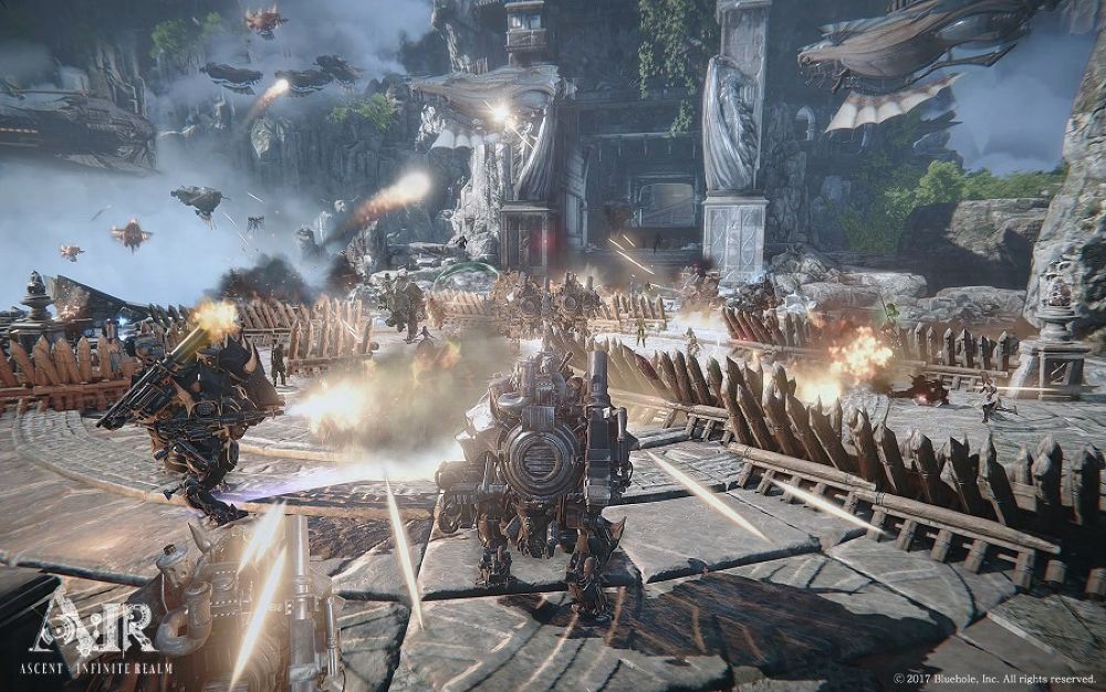 A:IR Ascent: Infinite Realm เป็นเกม MMORPG ที่ถูกเซ็ตธีมไว้ที่โลกและบรรยากาศแนว Steampunk ที่จะผสมผสานโลกของจักรกลและเวทย์มนต์เอาไว้ด้วยกันอย่างลงตัว ผู้เล่นจะสามารถเลือกใช้ยานพาหนะเพื่อไปบินไปบนท้องฟ้า และใช้มันทำการต่อสู้ได้อีกด้วย และเจ้ายานพาหนะนี่แหละเป็นอีกหนึ่งระบบสำคัญที่จะใช้ในการเล่นโหมด Realm VS Realm หรือพูดง่ายๆก็คือ PVP ที่จะให้ผู้เล่นบังคับยานของตัวเองไปสู้รบกับคนอื่นบนสมรภูมิกลางเวหา และบนพื้นดินยังมีทั้งหุ่นยนต์ และปืนใหญ่ให้เลือกใช้อีกด้วย