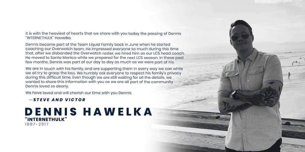 INTERNETHULK ได้เสียชีวิตแล้วด้วยวัยเพียง 30 ปีเท่านั้น ซึ่งผู้ที่ติดตามการแข่งขันหลายคนอาจจะคุ้นเคยกับเขาในฐานะสมาชิกทีม EnvyUs ก่อนที่เขาจะผันตัวมาเป็นโค้ชให้กับทีม Liquid ก่อนที่วันนี้ทาง Twitter จะออกมาประกาศถึงการเสียชีวิตของเขาครับ โดยรายละเอียดการเสียชีวิตของเขาไม่ได้มีข่าวยืนยันออกมาว่าด้วยสาเหตุอะไร Dennis Hawelka เป็นสุดยอดผู้เล่นมือฉมังซึง่สร้างชื่อมาตั้งแต่