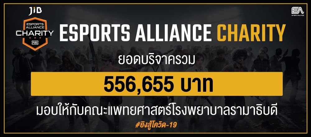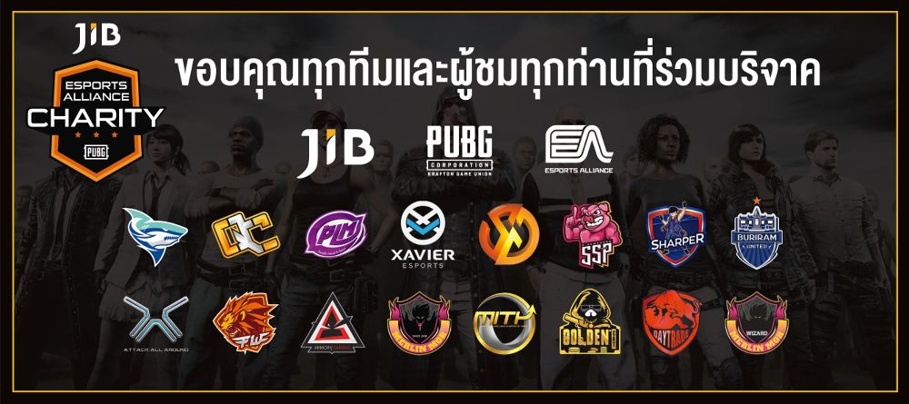 บริษัท พับจี คอร์ป ประเทศไทย จำกัด (PUBG) ร่วมสมทบบริจาคเงิน 100,000 บาท ในงาน JIB Esport Alliance PUBG Charity