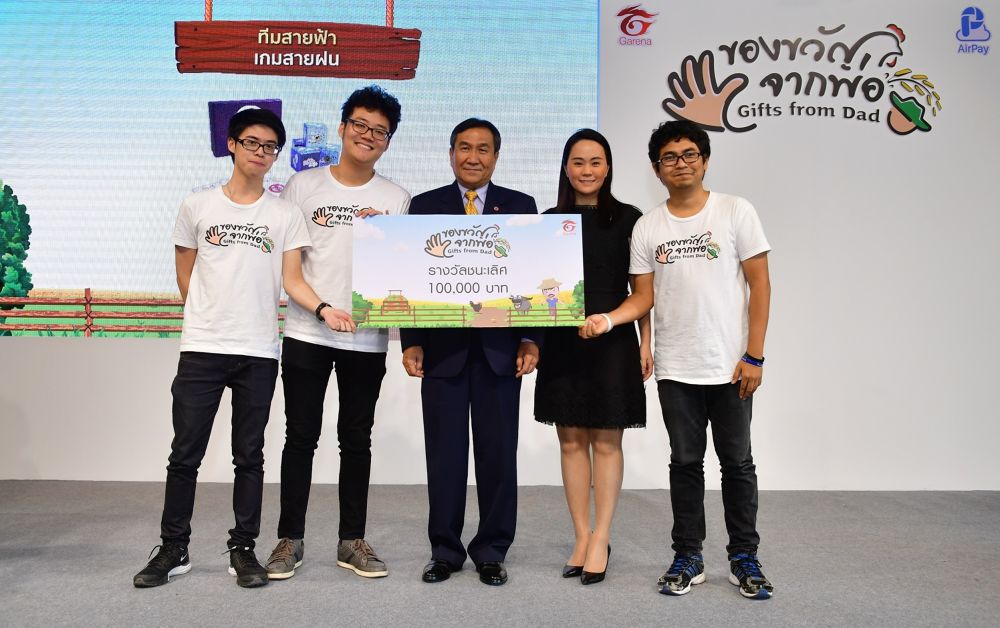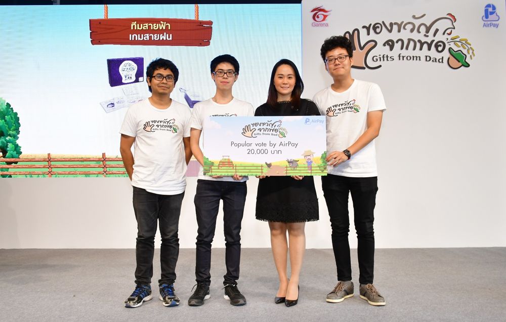 สำหรับทีมทีได้รับรางวัลชนะเลิศจากการประกวดในครั้งนี้ ได้แก่ ทีมสายฟ้า กับผลงานเกม สายฝน ที่คว้าเงินรางวัล 100,000 บาท ด้วยการนำความรู้ด้านวิธีการทำฝนหลวงมาถ่ายทอดในรูปแบบของบอร์ดเกมได้อย่างน่าสนใจ ทั้งรูปแบบของการเล่น การให้ความรู้ความเข้าใจของกระบวนการทำฝนหลวง และการออกแบบดีไซน์ ที่เหมาะสมแก่การเป็นสื่อการเรียนรู้ ตามกฎ และกติการที่กำหนด นอกจากนี้ ทีมสายฟ้า ยังได้รับรางวัล Popular Vote จาก บริษัท แอร์เพย์ (ประเทศไทย) จำกัด ซึ่งเป็นรางวัลที่เปิดโอกาสให้ร่วมโหวตผลงานสุดประทับใจในเฟซบุ๊ค AirPay Mobile Application ด้วยผลโหวตสูงสุดจากผู้ผ่านเข้ารอบทั้งหมด