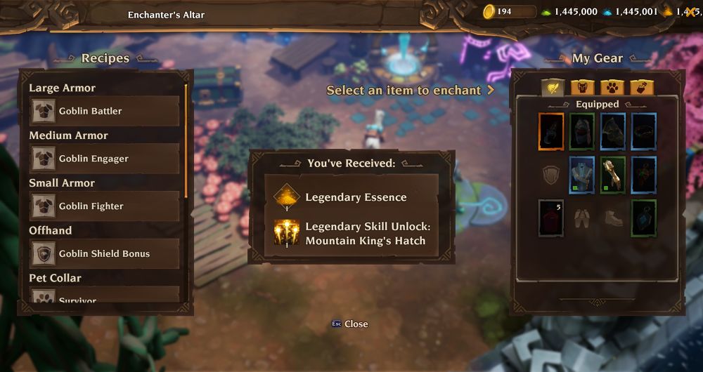 • Legendarium จะมีจำนวนให้ใส่ช่องสกิลเอฟเฟ็กต์จากไอเทม Legendary ใช้งานพร้อมกันได้ถึง 3 ช่อง ซึ่งจะปลดล็อคแต่ละช่องในตอนเลเวล 3, 20 และ 40