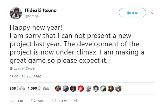 เมื่อช่วงปลายปีที่ผ่านมาทาง Capcom ได้เผยรายละเอียดเกี่ยวกับ Devil May Cry V ออกมาให้เราได้ทราบกันแล้ว ใครที่พลาดไม่ได้อ่านข่าวนี้สามารถคลิ๊กไปได้ที่นี่ คลิ๊กที่นี่ ล่าสุดคุณ Hideaki Itsuno โปรดิวเซอร์ซีรี่ย์ Devil May Cry และ Dragon's Dogma ผ่านทวิตเตอร์สวัสดีปีใหม่กับแฟนๆ ที่ติดตามทวิตเตอร์ของเขาพร้อมกับขอโทษที่ปีที่ผ่านมาไม่ได้มีการเปิดเผยตัวเกมใหม่ที่กำลังพัฒนากันอยู่ ทั้งนี้ในปีนี้เราจะได้เห็นรายละเอียดเกี่ยวกับเกมใหม่ที่พวกเขากำลังพัฒนากันอยู่อย่างแน่นอน สำหรับปีนี้เกมเมอร์หลายคนต่างก็คาดหวังที่จะได้เห็นตัวอย่างแรกของเกม Devil May Cry V หรือ Resident Evil 2 Remake ที่ตอนนี้เงียบหายไป 3 ปีหรือเปล่า ก็ต้องมาดูกันว่างานเกมใหญ่ๆ อย่าง E3 2018 หรือ Gamescom 2018 เราจะได้เห็นกันหรือเปล่าต้องมาติดตามกันต่อไป