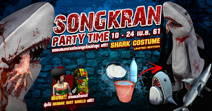 เริ่มภารกิจ Songkran Party Time ช่วงเวลาแห่งความสนุกกำลังจะอุบัติขึ้น! กับปาร์ตี้ฉลองเทศกาลสงกรานต์สาดน้ำสุดมันส์! และพิเศษสุดๆ Reggae Riot Shield เมื่อฆ่าซอมบี้เรกเก้สุดฮิปฟรี!