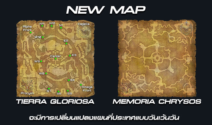 - ทุกๆวันเสาร์จะมีศึกชิงธงในเวลา 19.00 น. - Mission Wars จะมีการเปลี่ยนแปลงแผนที่ประเทศแบบวันเว้นวัน โดยจะมีรายละเอียดการนับคะแนนเพื่อชิงธงประเทศดังต่อไปนี้ แผนที่ Tierra Gloriosa (Channel 77) แผนที่ Memoria Chryso (Channel 80)