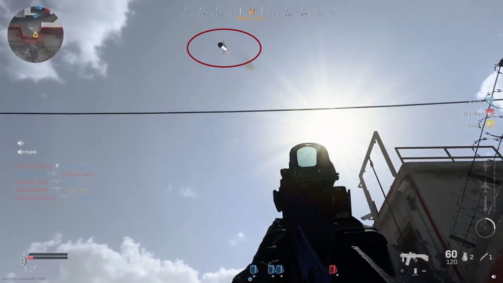 ได้เล็งไปที่อีกฝั่งนึงของแผนที่ เพราะคิดว่าผู้เล่นศัตรูน่าจะกำลังสุมหัวอยู่แถวนั้น แต่เมื่อพอเขาได้ทำการยิงเสร็จ ก็ถูกผู้เล่นฝังศัตรูแอบเข้าข้างหลังยิงสังหารโดยทันที