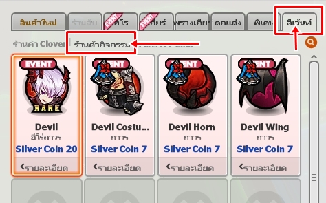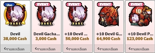 ทั้งนี้ ทุกๆ การเปิด Devil Gachapon จะได้รับ Silver Coin ครั้งละ 1 เหรียญ สำหรับใช้สะสมให้ครบ 20 เหรียญ เพื่อนำไปแลก Devil แบบถาวร ที่ร้านค้า Event ได้อีกด้วย หรือจะเลือกแลกเป็นคอสตูมของ Devil เพื่อนำไปใส่กับตัวละครอื่นๆ ก็ได้เช่นกัน