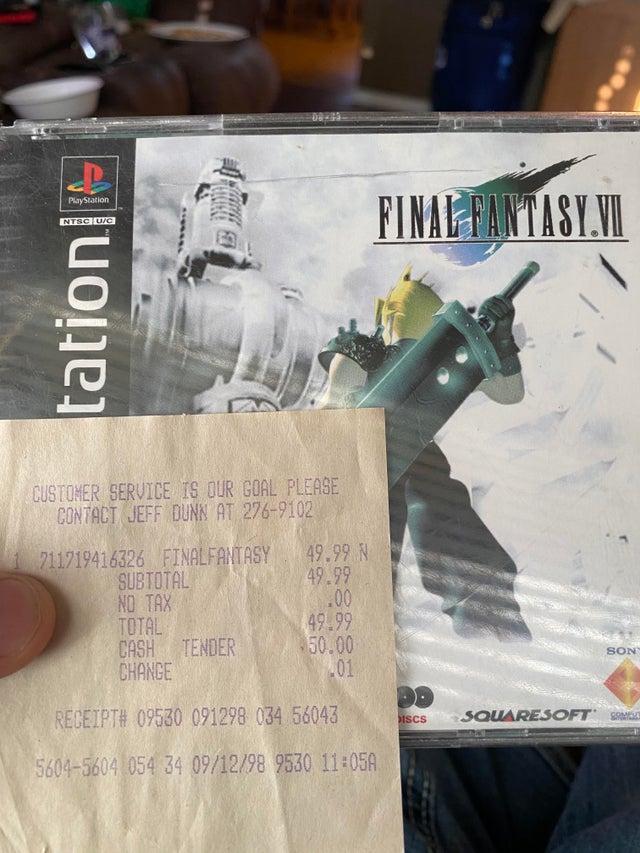 Final Fantasy VII Remake เกมแนว JRPG ชื่อดังภาคล่าสุดจากทาง Square Enix ที่ได้นำตำนานเกม Final Fantasy VII ปี 1997 กลับมาทำใหม่ให้มีกราฟิก และเกมเพลย์ทันสมัยกว่าเดิม เพื่อให้เหล่าผู้เล่นเกม RPG หน้าใหม่ได้เป็นที่รู้จัก และผู้เล่นหน้าเก่าได้กลับไปคิดถึงกัน น่าจะเป็นเกมที่ทำให้หลายคนกำลังสนุกสนานอยู่ไม่ใช่น้อย เนื่องจากตัวเกมที่ก็ออกแบบใหม่มาได้สนุกมาก แถมยังมีการนำฉากจากอดีตมาทำให้สื่อได้สมจริงกว่าเก่า ก็ยิ่งทำให้เหล่าแฟนเกม Final Fantasy ต้องฟินกันเป็นอย่างมาก ล่าสุดนี้ บนเว็บไซต์ Reddit ก็มีเกมเมอร์ท่านหนึ่งนาม Izludetingel ตั้งกระทู้ภายในหมวดเกี่ยวกับเกม พร้อมเผยภาพแผ่นเกม Final Fantasy VII ฉบับต้นตำรับบนเครื่อง PlayStation 1 ออกมาให้ชมจากการที่เขาได้ไปขุดเจอภายในบ้านกัน แต่ภาพดังกล่าว ก็ไม่ได้เผยออกมาให้ชมแค่แผ่นเกมเท่านั้น เพราะยังมีอีกสิ่งหนึ่งที่น่าประหลาดใจมากๆ คือ Izludetingel ยังขุดเจอใบเสร็จที่ซื้อเกมนี้มาจากร้านแห่งหนึ่งในปี 1997 อีกต่างหาก! สำหรับใบเสร็จดังกล่าว ก็ถือว่ามีความน่าสนใจไม่ใช่น้อย เพราะถึงแม้จะไม่ได้บ่งบอกว่า Izludetingel ไปซื้อมาจากร้านค้าไหน แต่ราคาของแผ่นเกมแท้ Final Fantasy VII ในสมัยนั้นก็อยู่ที่ 49.99 ดอลล่าร์ (ประมาณ 1,500 บาท) ขณะที่ราคาเกม Final Fantasy VII Remake จะอยู่ที่ 59.99 ดอลล่าร์ (ประมาณ 1,800 บาท) เป็นเครื่องหมายที่แสดงให้เห็นชัดเลยว่าราคาเกมเมื่อ 23 ปีที่แล้ว ก็ไม่ได้มีความแตกต่างมากจากราคาเกมในสมัยนี้เลย แม้ด้านกราฟิกจะสวยขึ้น หรือเกมเพลย์จะดูสมจริงมากกว่าเดิมหลายเท่า โดยอาจเป็นไปได้ว่าหากเกมยิ่งขายราคาแพงกว่านั้นมากขึ้นเท่าไหร่ ผู้ที่สามารถซื้อมาครอบครองได้ก็จะมีน้อยลง แต่พวกเขาก็ได้ใช้วิธีหากำไรเพิ่มเติมอย่างการขายภาคเสริม หรือ DLC ในหลายๆ เกมที่เห็นกันแทน ซึ่งอย่าง Final Fantasy VII Remake ก็ไม่ได้ใช้วิธีขายภาคเสริม หรือ DLC ตามที่กล่าวไว้ข้างต้น แต่จะใช้วิธีขายแยกเป็นเกมหลายภาค ส่งผลให้ปัจจุบัน เนื้อเรื่องจะยังไม่สามารถเล่นได้จนจบเหมือนกับต้นฉบับของ PlayStation 1 และจะต้องรอภาคต่อไปออกมาเสียก่อน >>> สามารถรับชมกระทู้ Reddit ได้ที่นี่ <<< ใครที่สนใจจะซื้อเกม Final Fantasy VII Remake ก็สามารถเข้าไปดูรายละเอียดผ่านหน้า PlayStation Store ได้เลยที่นี่ โดยเกมก็ได้เพิ่งวางจำหน่ายแล้วนับตั้งแต่วันที่ 10 เมษายน 2020 ที่ผ่านมา แถมทาง Playultimate ก็มีรีวิวเกมให้ชมกันแล้วอีกด้วย! อ่านเพิ่ม:Review Final Fantasy VII Remake เกมแห่งความทรงจำที่หวนกลับมาอีกครั้งบน PS4 [ไม่สปอย] ที่มาภาพเพิ่มเติม: Ffvii-remake