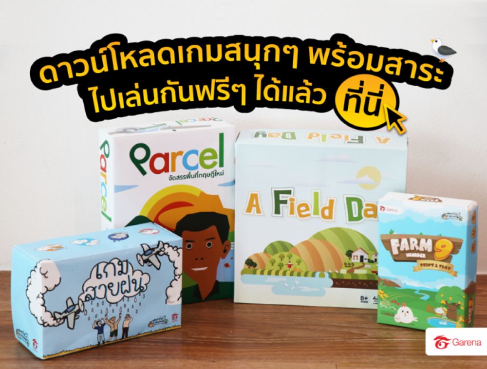 บริษัท การีนา ออนไลน์ (ประเทศไทย) จำกัด เปิดช่องทางดาวน์โหลดบอร์ดเกมจากการแข่งขันประกวดออกแบบบอร์ดเกมโครงการ “ของขวัญจากพ่อ” ประจำปี 2560 พบบอร์ดเกมที่น้อมนำแนวพระราชดำริและองค์ความรู้อันทรงคุณค่าของในหลวงรัชการที่ 9 มาใส่ไว้เป็นแก่นของเกม ที่ผู้เข้ารอบทั้ง 4 ทีมได้แก่ ทีมสายฟ้า, Parcel, A Field Day และ Farm No.9 ได้พัฒนาเสร็จสมบูรณ์ พร้อมดาวน์โหลดในรูปแบบ Print & Play สำหรับความสนุกให้ทุกวัยได้เรียน เล่น รู้ ไปพร้อมๆ กัน