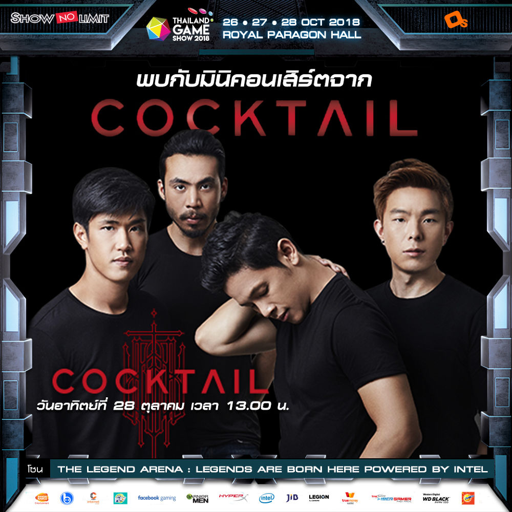 • พบกับความมันส์เกินขีดจำกัด กับมินิคอนเสิร์ตจากวง Cocktail ที่จะมาเติมความสนุกแบบสุดขีดให้กับงาน บนเวทีแบบ 360 องศา ที่โซน The Legend Arena: Legends are born here Powered by Intel ในวันอาทิตย์ที่ 28 ตุลาคม เวลา 13.00 น.