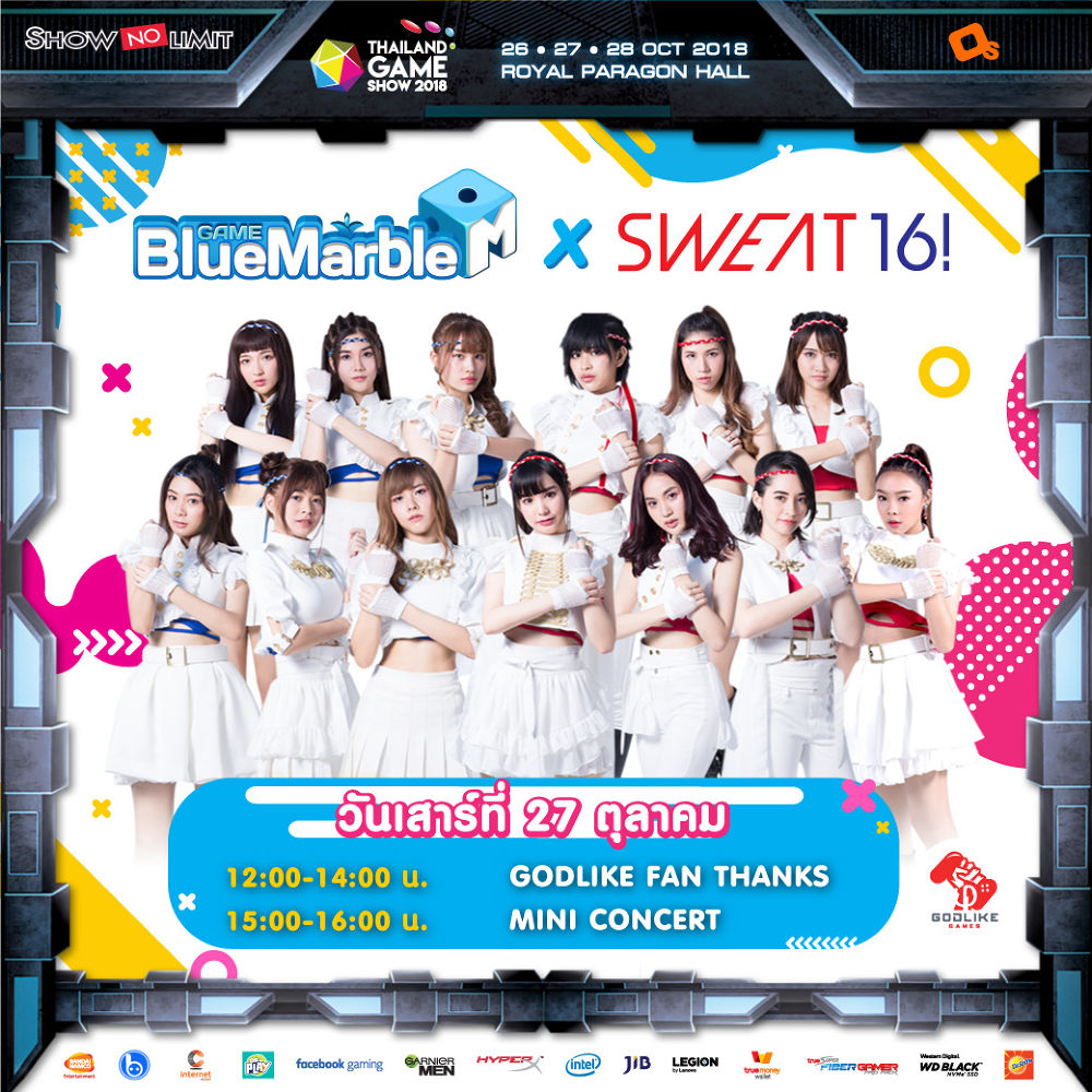 • พบกับอีเว้นท์สุดพิเศษ GODLIKE Fan Thanks ที่เปิดโอกาสให้แฟนๆได้สัมผัสกับ 13 สาวไอดอล SWEAT16 อย่างใกล้ชิด พร้อมชมมินิคอนเสิร์ตสุดน่ารัก สดใจ และเปิดตัวเพลงใหม่แกะกล่องสำหรับงานนี้โดยเฉพาะ ในวันเสาร์ที่ 27 ตุลาคม เวลา 12.00 น. เป็นต้นไป ที่บูธ GODLIKE Games