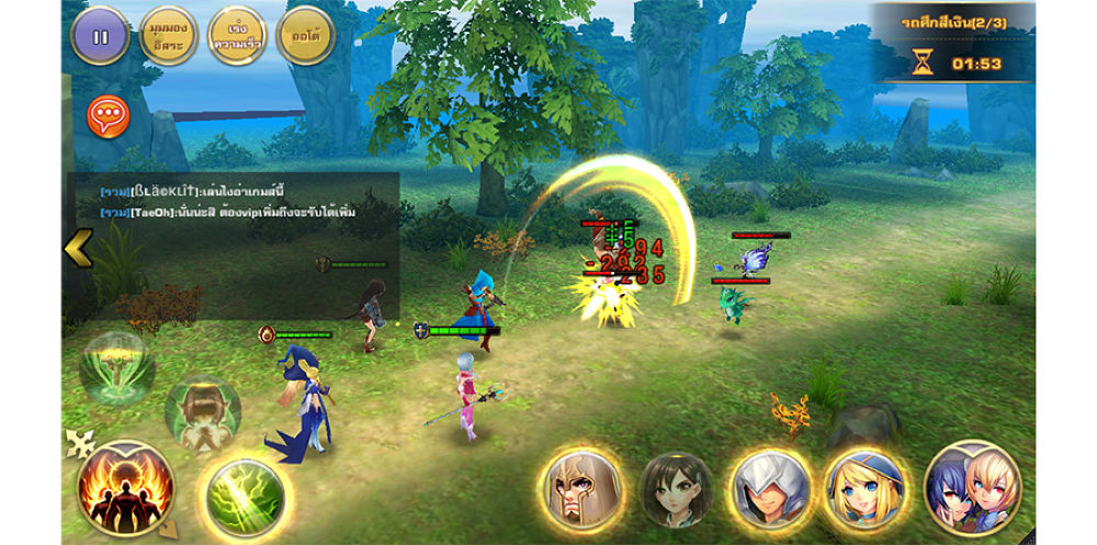 การบังคับเกมในโหมดต่อสู้ การต่อสู้ของเกม เป็นรูปแบบสั่งการกึ่งอัตโนมัติ ตัวละครจะวิ่งออกไปโจมตีปกติด้วยตัวเอง ไม่สามารถเลือกเป้าหมายได้ โดยผู้เล่นสามารถสั่งให้ตัวละครใช้งาน Action Skills, รวมพลังโจมตี, Summon Skills (อัญเชิญมนอสูร) ในจังหวะต่างๆ ได้อย่าง Real-Time ซึ่งหากม่สะดวก หรือ ไม่ว่างเล่น ตัวเกมก็มีปุ่ม "ออโต้" ไว้ด้านบน สามารถเปิด/ปิด ตอนไหนก็ได้ที่คุณต้องการ