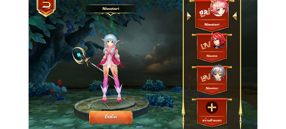 หลังจากที่ Login เข้าสู่เกมแล้ว ระบบจะให้เราเลือกเซิร์ฟเวอร์ ซึ่งมีแค่อันเดียว ณ.วันเปิดเซิร์ฟ ... จากนั้นระบบจะให้เราสร้างตัวละครเพื่อเริ่มเล่นเกม ณ.จุดนี้ จะเห็นได้ว่ามีที่ว่าง ให้เราสร้างตัวได้ถึง 4 Slot โดยแต่ละตัวจะมี สิ่งของ, พลังงาน, ทอง และเพชร แยกกันทั้งหมด นับรวมกันแค่ระดับ VIP ของไอดีเท่านั้น
