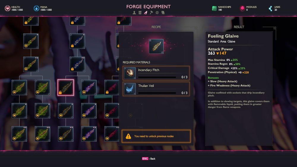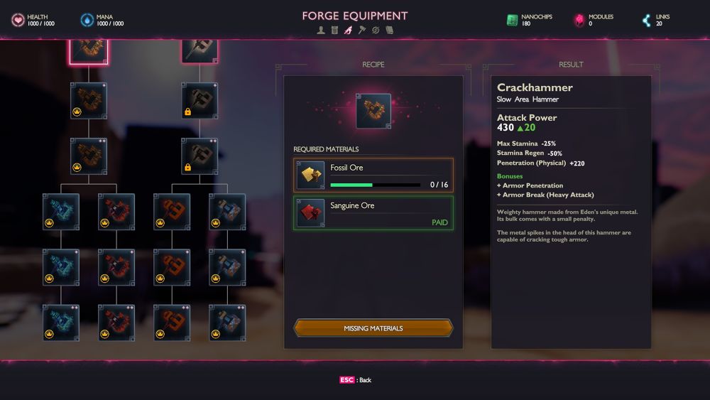 อาวุธกับชุดเกราะเกมนี้ เบื้องตนที่เล่นยังไม่มีผลมากเท่าไร แต่พอเริ่มไปถึงสักระดับ 2-3 จะเริ่มมีสเตตัสแฝงมาแล้ว เช่นบางชุดใส่แล้วจะรีเจน Stamina ช้าลง แต่พลังป้องกันจะสูง บางชุดป้องกันธาตุไฟ ธาตุสายฟ้า รวมไปถึงอาวุธที่เมื่อใช้แล้วจะติดเอฟเฟคท์พิเศษเช่นทำลายเกราะ  ทำให้เลือดไหล ดังนั้นก่อนคราฟท์ก็ดูดีๆว่าเราอยากเล่นสายนั้นไหม จริงๆคือมันคราฟท์ได้ทุกอย่าง ไม่จำกัด แต่วัตถุดิบหลังๆจะหายาก รากเลือดนิดนึง ถ้าไม่มีตี้ ดังนั้นก่อนคราฟท์ดูให้ดี หรือบริหารการเล่นกับเพื่อนเอาว่าใครจะเล่นสายอาวุธไหน จะได้ไม่ต้องทับซ้อนกัน อย่าลืมว่าเกมนี้โคออปกันได้ 8 คน ลุยกันให้หน้าไหม้
