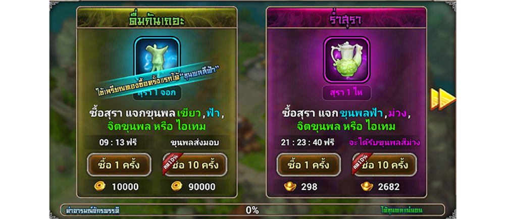 เป็นระบบสุ่มขุนพล จะมี 2 โหมด คือ ดื่มกันเถอะ จะใช้เงินในเกมมาทำการสุ่ม มีโอกาสได้รับไอเทมสีเขียว ขุนพลสีเขีวหรือชิ้นส่วนขุนพลสีเขียว ร่ำสุรา จะใช้ตำลึงทองในการสุ่ม มีโอกาสได้รับ ขุนพลฟ้า ขุนพลม่วงหรือชิ้นส่วนขุนพล และไอเทม