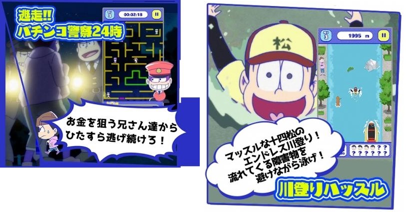 สำหรับเกมสุดท้ายนี้ยังไม่เปิดให้เล่นสนุกกันนะคะ โดยมีกำหนดว่าจะเปิดให้เล่นสนุกกันภายในเดือนที่ 4 นี้ (2016) เป็นเกมที่รวมหลากหลายมินิเกมเข้าไว้ด้วยกันเช่น Pacman , ว่ายน้ำตะลุยด่าน ที่จะมาในเวอร์ชั่น Osomatsu โดยเราสามารถเลือกเล่นเกมได้ตามใจชอบ ที่พิเศษกว่านั้นคือเราสามารถเก็บสะสม Scene Card ได้ด้วย แต่แค่ยังไม่หมดนะ ! สำหรับเกม Osomatsu San hacha mecha Party นี้ยังมีการจัดอันดับผู้เล่นอีกด้วย สามารถแข่งขันกับเพื่อนๆ หรือคนทั้งประเทศก็ยังได้ เป็นยังไงบ้างคะ กับสามเกมจากซีรีย์ Osomatsu เป็นเกมที่ไม่ว่าใครก็สามารถเล่นได้ง่ายๆ ไม่จำเป็นต้องไปหาข้อมูลอะไรเลย เหมาะสำหรับคนที่ต้องการผ่อนคลายมากๆ ค่ะ แถมยังดาวน์โหลดเล่นได้ฟรี!แบบนี้อีก เรียกว่าใครเป็นแฟนแฟนทั้งหกคนนี้ต้องห้ามพลาดเด็ดขาดเลยนะ !
