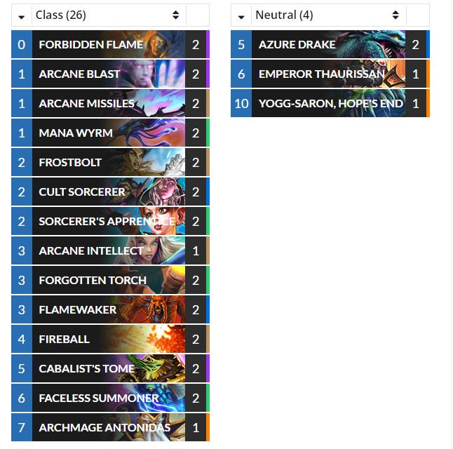 แนวทางการเล่นยังคงเดิมคือต้องอาศัยจังหวะการเล่นให้พอดี เคลียร์ Minion ลงการ์ดให้ถูกเวลา Deck นี้นำมาจาก Amaz Proplayer ขวัญใจใครหลายคน ใบหลักๆคือ Forbidden Flame, Faceless Summoner และ Flamewaker ที่ยังคงเป็นการ์ดเทพอยู่ ส่วนอีกใบคือ Yogg-Saron, Hope's End การ์ดไพ่ตายใบสุดท้าย ได้ทั้งความมันส์ความสนุกแน่นอน (ฮา)