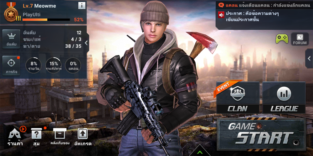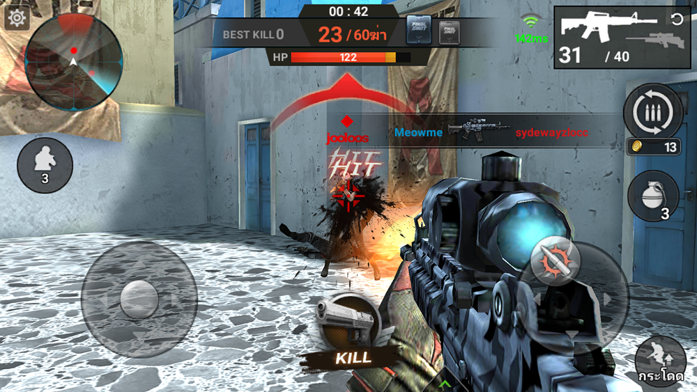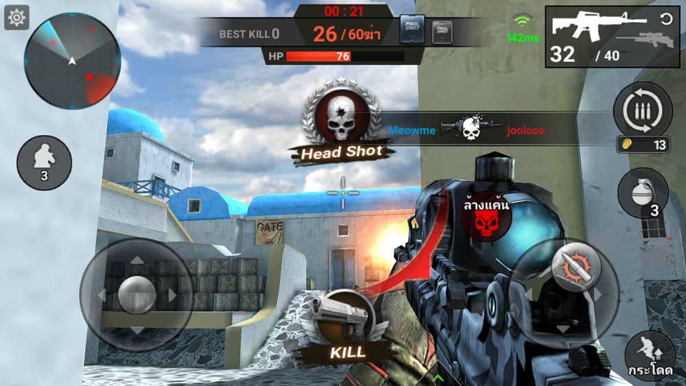 อะไรทำให้เกมนี้เป็นเกมที่น่าจับตามอง? Final Shot เป็นเกม FPS ที่ทำระบบออกมาได้ดีมากๆ รองรับกับการเล่นบนมือถือแบบสุดๆ ใครไม่เก่งเกม FPS หรือไม่เคยเล่นเกมแนวนี้บนมือถือก็เล่นได้ เพราะอะไร? วันนี้เราเอามาให้ดู!► สามารถควบคุมตัวละครได้อย่างอิสระ แถมยัง "ปรับมุมมองในการยิงได้" อีกด้วย!! โดยมีด้วยกัน 2 แบบคือ มุมมองบุคคลที่ 1 และมุมมองบุคคลที่ 3► ระบบ "ล้างแค้น" ใครมายิงเราข้างหลัง แค่จิ้มปุ่มล้างแค้นไป กล้องจะหันปืนไปหาคู่ต่อสู้ทันทีเลย!► มีระบบช่วยเล็ง พอเราเลื่อนปืนไปใกล้คู่ต่อสู้ ปืนจะเลื่อนไปที่ตัวคู่ต่อสู้อัตโนมัติ แต่ไม่ได้ล็อกเป้านะ ยังต้องใช้ฝีมือในการเล่นอยู่พอสมควรมีอาวุธให้เลือกใช้มากมาย พร้อมระบบอัพเกรด เราสามารถสวมใส่อาวุธได้ 2 ชนิด คือ ปืนไรเฟิล และสไนเปอร์ ซึ่งสามารถกดสลับเปลี่ยนได้ขณะที่เล่นเกมแบบไม่มีดีเลย์ ทำให้เราเปลี่ยนอาวุธได้อย่างรวดเร็วทันใจ ส่วนการอัพเกรดจะเป็นการใส่อุปกรณ์เสริมให้กับอาวุธ แบ่งเป็น 4 ส่วน คือ เพิ่มพลังทำลาย, เพิ่มความเร็วในการยิง, เพิ่มอัตราการยิงติดคริติคอล, และเพิ่มอัตราการยิงหัวมีโหมดและด่านให้เล่นหลากหลายในตอนนี้เกมมีด่านให้เลือก 4 ด่านด้วยกัน พร้อมโหมดให้เล่นหลักๆ อีก 4 โหมด ได้แก่ เป็นโหมดสำหรับใช้แข่งขันกันระหว่างแคลนเราและแคลนอื่น แบบ Real-Time ด้วยจำนวนผู้เล่น 5 ต่อ 5 เป็นโหมดสำหรับใช้แข่งขันกับผู้เล่นอื่นๆ แบบเป็นทีมด้วยจำนวนผู้เล่น 5 ต่อ 5 เป็นโหมดสำหรับเล่นคนเดียว ให้เราแข่งขันกับบอทแบบ PVP โดยมีเวลากำหนด ยิ่งฆ่าได้มากก็จะได้รับรางวัลมากขึ้น► โหมดสงครามปาร์ตี้เพื่อน