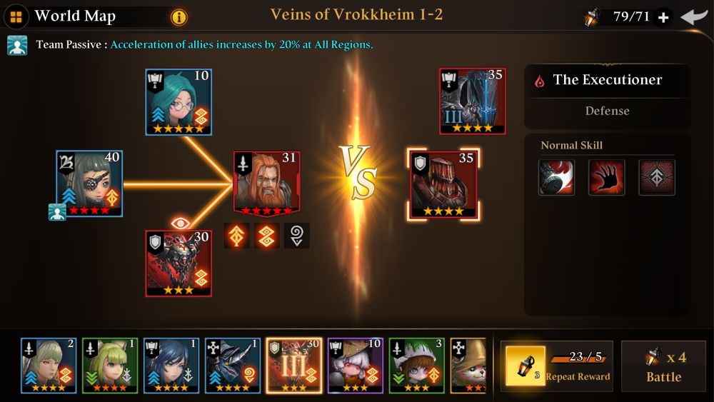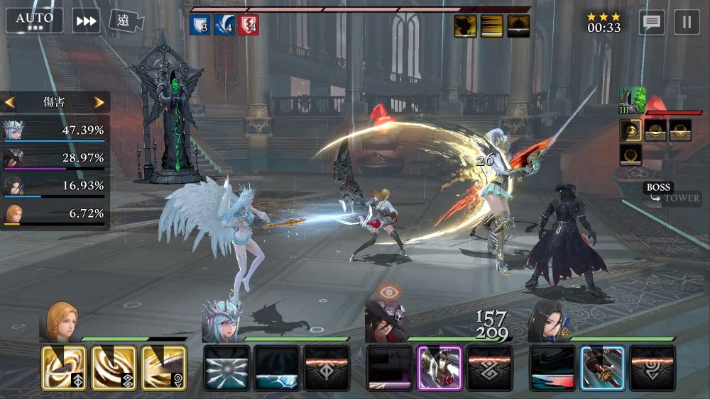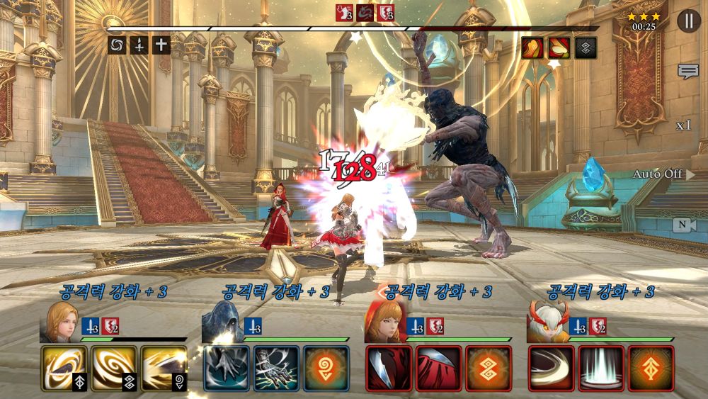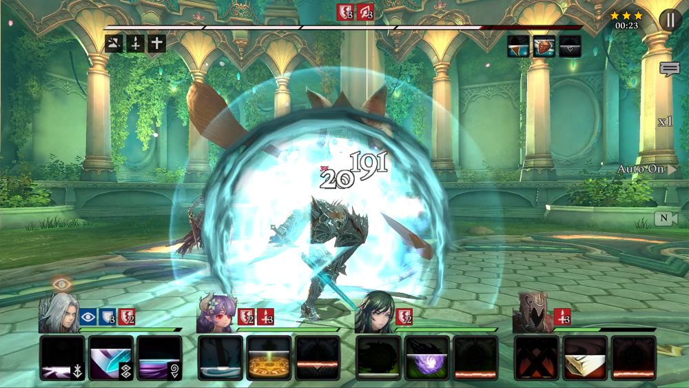 ที่ทีมของเราจะสู้และใช้สกิลให้เราเอง แต่เราสามารถ “เลือก” สกิลที่อยากจะใช้ได้โดยการกดสกิลที่ต้องการ ยิ่งไปกว่านั้น เราสามารถกดทีละหลาย ๆ สกิลเพื่อเรียงลำดับการใช้งานได้ด้วย โดยส่วนใหญ่ AI ของเกมนี้จะมีความฉลาดพอสมควร (ตัวแทงค์กับตัวฮีลมักจะรู้งานดี) แต่ก็มีด่านยาก ๆ อยู่บางด่านเหมือนกัน ที่เราอาจจะต้องเข้าไปกดช่วยเป็นระยะ ๆ