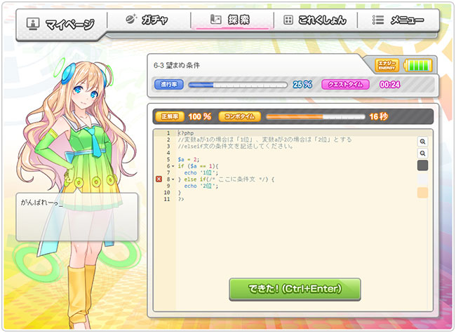 ซึ่งการเล่นก็ง่ายๆแค่ทำเควสด้วยการเขียนโปรแกรม สุ่ม gacha สะสมสาวๆ Code Girl อัพสกิลเพื่อเอาความทรงจำของเรากลับคืนมา และพัฒนาความสัมพันธ์กับสาวน้อยลิเลีย โดยโปรแกรมที่เราจะได้ฝึกเขียนจะมี PHP , Ruby และ Python(จะนำมาเปิดในเดือนพฤษภา) ค่ะ เล่นเกมนี้แล้วเอาไปทำงานได้เลยไหมอะ *o*
