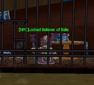 - เมื่อคุยครบแล้ว ประตูจะพาเราวาร์ปมาอีกสถานที่หนึ่ง ให้เดินไปทางซ้าย ซึ่งจะเป็นทางตรงบังคับเดิน ไม่คดเคี้ยว จนสุดทางเลี้ยวขวา จะเป็นลานกว้าง เดินเข้าไปในสุดจะพบกับ [NPC]Locked Believer of Balie ซึ่งเป็นผู้ที่จะแปลงโฉมชุดใหม่ให้เรานั่นเอง