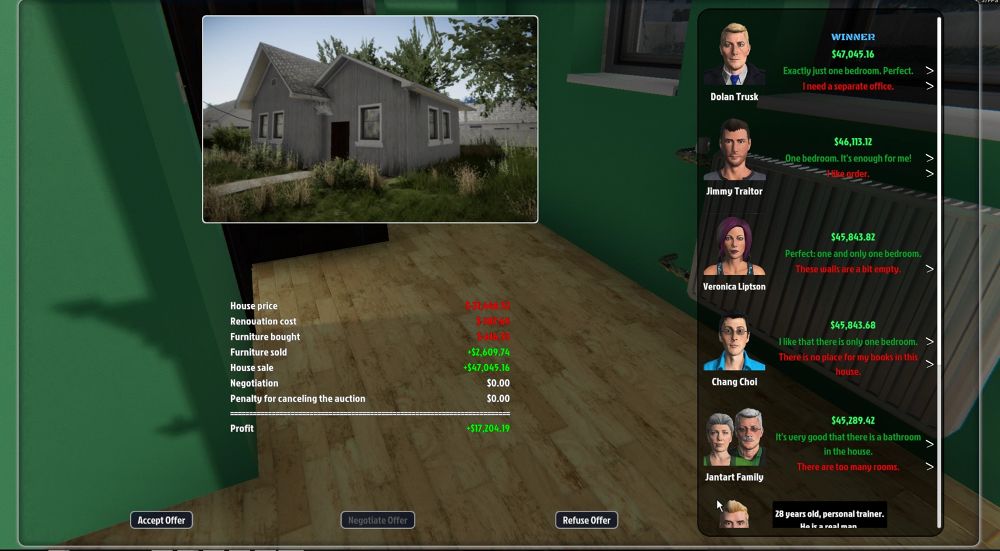 รวมไปถึงเกมนี้ยังมีการลงทุนซื้อบ้านเก่าๆที่ไม่มีใครสนใจแล้ว จากนั้นให้เราเข้าไปรีโนเวทใหม่ทั้งหมด เรียกได้ว่าจัดเต็มแล้วแต่สมองจะประมวลผลและวางแผนออกได้เลย ไม่ว่าจะเป็นการทาสีใหม่ ทำความสะอาด ติดตั้งอุปกรณ์อำนวยความสะดวก แล้วแต่เราจะออกแบบเองเลย จากนั้นสามารถส่งบ้านที่เรารีโนเวทใหม่ได้ ออกไปขึ้นประมูลบนอินเตอร์เน็ตได้อีกด้วย เรียกได้ว่าถ้าเราแต่งออกมาได้สวยงามมากพอ ก็จะได้ราคาประมูลในราคาที่สูงมาก ลงทุนไปนิดเดียวกำไรบานเบอะ!