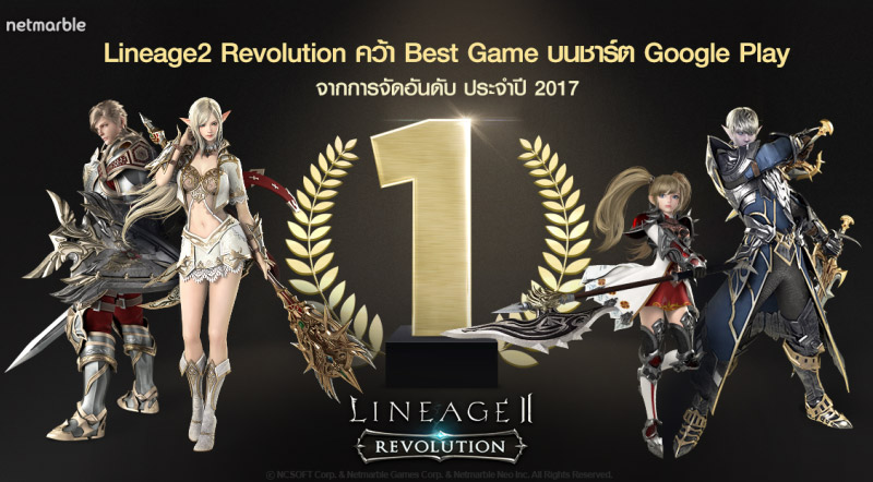 เน็ตมาร์เบิ้ล ได้เผยวันนี้ว่า เกม MMORPG ชื่อดังอย่างLineage2 Revolution ได้คว้ารางวัล Best Game ในการจัดอันดับเกมยอดเยี่ยมแห่งปี 2017 หรือ ชาร์ต Best Games of 2017 บน Google Play ในประเทศไทย พร้อมแจกของรางวัลโดนใจ แค่ 2 วันเท่านั้น!! นอกจากนี้ ในชาร์ต Best Games of 2017 ยังแบ่งรางวัลออกเป็นหลายประเภท ทั้ง Most Competitive เกมที่มีการแข่งขันดุเดือดที่สุด, Most Social เกมที่สร้างกลุ่มสังคมได้อย่างยอดเยี่ยม, Best Indie เกมอินดี้ยอดเยี่ยม, Most Innovative เกมสุดยอดนวัตกรรม, Best Pick Up & Play เกมเด็ดที่ต้องเลือกและเล่น, Best for Kids เกมสำหรับเด็กยอดเยี่ยม และรางวัลที่มีผู้ชนะเพียงหนึ่งเดียว อย่างรางวัล Best Game ประจำปีนี้ตกเป็นของ Lineage ll Revolution ทั้งในประเทศไทย และไต้หวันอีกด้วย เพื่อฉลองความสำเร็จครั้งนี้ เน็ตมาร์เบิ้ลยังจัดกิจกรรมพิเศษ แจกไอเทมสุดเอ็กซ์คลูซีฟ 2 วันติด ได้แก่ หินคุณสมบัติระดับ SR ในวันที่ 2 ธ.ค. และ หินข้ามขีดจำกัดระดับ SR ในวันที่ 3 ธ.ค. นี้ ให้แก่ผู้เล่นทุกคน ทุกเซิร์ฟเวอร์ รอรับไอเทมได้เลยเวลา 19.00 น.!