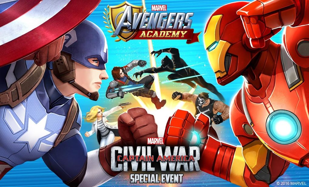 ตอนนี้กระแส Civil War จากหนังดังอย่าง Captain America ยังไม่หายไปไหน Marvel Avenger Academy ก็ได้จัด Event พิเศษเพื่อให้เข้ากับกระแส Civil War กันบ้าง โดยEvent นี้จะมีเหตุการณ์ที่ทำให้เกิดการแตกแยกกันระหว่าง Captain America และ Iron Man โดยในช่วง Event จะมีการอัพเดทเหตุการณ์ต่างๆที่เกี่ยวกับการแตกแยกกันของพวกเค้า  ซึ่งจะมีเควสต่างๆ และของรางวัลต่างๆ ให้ได้เก็บเพิ่มด้วย นอกจากนั้นยังมีการอัพเดทนักเรียนใหม่เข้าสู่ สถาบัน Avenger ด้วย โดยจะมี Winter Solider, Black Panther, Madame Hydra และ Crossbone ให้เราเก็บสะสมเพิ่มด้วย