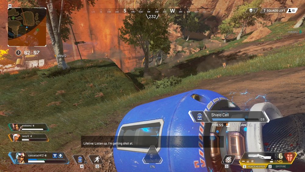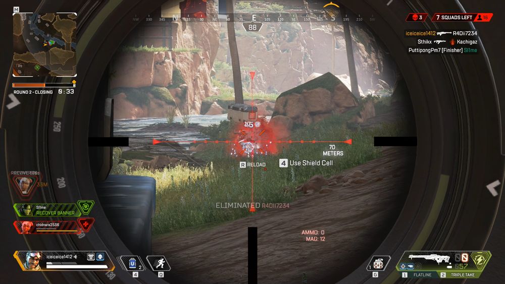 อย่างเช่น Bloodhound ที่เหมาะกับการเล่นแบบดักส่องศัตรูระยะไกล เพราะเราสามารถใช้สกิลอัลติเมทในการมองทะลุควันได้เป็นต้น ดังนั้นก่อนจะหยิบ Legend ตัวใดไปลงสนามรบ เรียนรู้สกิลของ Legend ตัวนั้นๆให้ดีครับ จะได้เล่นและใช้งานมันได้อย่างเต็มที่2.เกมนี้บังคับเล่นแบบทีมเท่านั้นหลายคนไม่รู้ว่ากดโซโล่ตรงไหน ดูโอ้ยังไง คำตอบคือเกมนี้ไม่มีโหมดการเล่นแบบเดี่ยวนะครับ เกมจะบังคับให้เราไปจับคู่กับผู้เล่นอื่นแบบทีม 3 คนเท่านั้น ซึ่งสาเหตุอาจจะเป็นเพราะว่าฮีโร่ของเกมนี้แบ่งออกเป็น 3 สาย อาจจะเกิดความไม่เท่าเทียมขึ้นก็ได้ ถ้ากดโซโล่แล้วไปเจอสายที่ได้เปรียบ แม้ว่าหลังจากลองเล่นไปหลายรอบแล้ว ผลต่างของคลาสจะมีไม่มาก และเน้นวัดฝีมือกันที่ Gunplay และฝีมือผู้เล่นมากกว่าอยู่ดี แต่ก็นะ ยังไงมีผู้เล่นอื่นร่วมด้วยก็อุ่นใจกว่าเล่นคนเดียวแน่นอน (เว้นแต่เจอทีมไก่ ถ่วงจนหงุดหงิดอันนั้นก็อีกเรื่องนึง)3.ไม่ต้องหาจุดลงหรือกระโดดเอง หากคุณไม่ใช่ Masterjumpในเกมนี้ เมื่อเริ่มต้นเกมขึ้นมาแล้ว เราและสมาชิกทีมอีก 2 คน มีโอกาสสุ่มได้รับเลือกให้เป็นตำแหน่ง Masterjump หรือผู้นำการโดดนั่นเอง โดยสมาชิกอีก 2 คนที่เหลือก็ยังสามารถกดมาร์คจุดแนะนำให้คนที่เป็น Masterjump เลือกลงได้ โดยเมื่อมีสมาชิกที่เป็น Masterjump กดปล่อยตัวจากเรือบินส่งตัว สมาชิกทีมที่เหลือก็จะเคลื่อนที่บินขนาบข้างตำแหน่ง Masterjump ไปโดยอัตโนมัติ แต่ถ้าเกิดใครอยากเปรี้ยวแยกตัวไปคนเดียวก็เพียงแค่กดปุ่ม Ctrl เพื่อเป็นการ Launch Solo หรือบังคับตัวละครเลือกจุดที่ลงเองได้ด้วย สุดยอดแห่งการสร้างทางเลือก และทำให้เกมหลากหลายขึ้นจริงๆครับ4.เกมนี้บังคับเล่นแบบ FPSสำหรับเกมเมอร์หลายคนอาจจะชอบเล่นมุมมองแบบ TPS ซะมากกว่า เพราะเล่นง่าย ไม่เวียนหัว และดักเก็บศัตรูได้ง่าย แต่เสียใจด้วยที่เกมนี้มีแต่มุมมอง FPS เท่านั้น ซึ่งคนที่ชอบก็จะชอบเลย แต่ถ้าคนที่ไม่ชอบ หรือเป็นโรคมึนๆกับมุมมองนี้อย่าง Motion Sickness ก็อาจจะต้องโบกมือลาเกมนี้ไปเลยก็ได้ แต่สำหรับใครที่เป็นสาวกเกมมุมมอง FPS นี่ต้องบอกเลยว่าสะใจแน่นอนครับ5. เสื้อเกราะพังแล้วซ่อมได้ด้วย Shield Cellสำหรับเกมนี้บอกเลยว่าหากคุณโชคดีได้เกราะระดับสูงมาแล้ว (หรือจะเป็นเกราะระดับต่ำสุดก็ได้) การถูกยิงจนเกราะแตก ไม่ใช่ปัญหาครับ เพราะเกมนี้มีไอเทมที่ชื่อ Shield Cell โดยเมื่อเรากดใช้งาน มันจะเป็นการฟื้นฟูหรือซ่อมแซมเกราะของเราครับ โดย Shield Cell 1 ชิ้นจะซ่อมเกราะของเราได้ 1 ช่อง อย่างในภาพด้านบนนี้ เกราะของผมเป็นระดับสูงสุด มี 4 ช่องก็ต้องใช้ Shield Cell 4 ชิ้น แต่ก็มีไอเทม Shield Battery ระดับสูงที่ใช้ซ่อมเกราะท