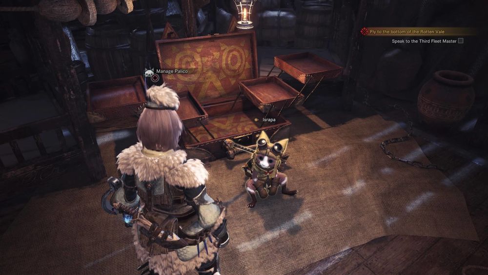 คู๋หูของเราที่สร้างไว้ตั้งแต่ตอนเริ่มเกมแล้ว และสำหรับมือใหม่ ถือว่าเป็นตัวช่วยที่ดีในการล่าให้กับเราแบบสุดๆ เพราะนอกจากมันจะช่วยสร้างความเสียหายให้กับเหล่ามอนสเตอร์แล้ว ภาคนี้เจ้าเหมียวยังถูกอัพเกรดขึ้นมาให้น่าใช้มากขึ้น เช่น แมวสำหรับเก็บแมลงระเบิดแสงไว้ในกรงได้ เพื่อให้เราสามารถใช้งานได้อย่างสะดวก และสำหรับสายปืนที่ยังไม่เชี่ยวชาญกับการเล่นคนเดียว