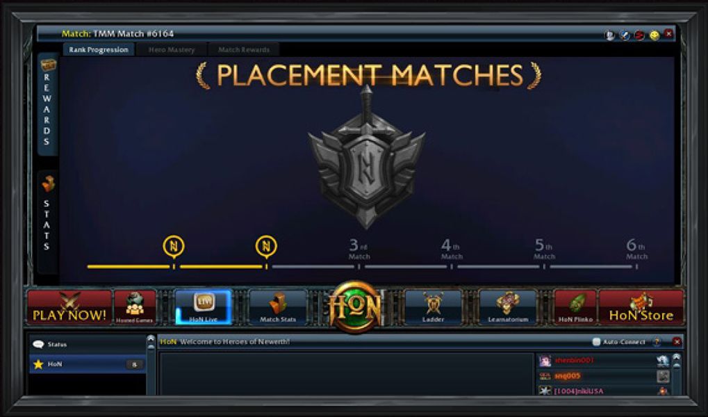 เพิ่มระบบใหม่ Champions of Newerth (CoN) เพื่อมาแทนระบบ MMR Leaderboard ในปัจจุบัน เพื่อตอบความต้องการของทั้งผู้เล่นสาย Casual และ Hardcore โดยการจัดอันดับนั้น เพื่อนๆ จะต้องเข้าเล่น Placement Match จำนวน 6 รอบ เพื่อวัดอันดับของตนเอง