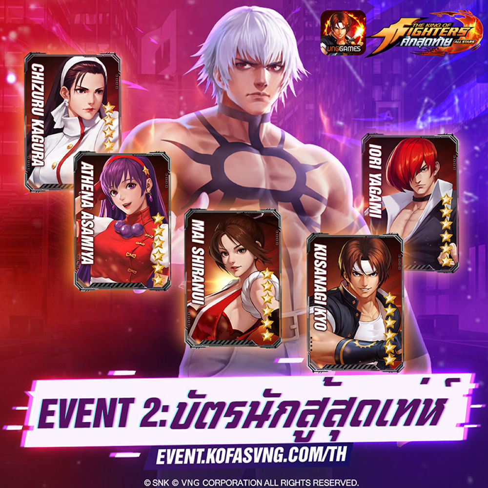 KOF AllStar-VNG เป็นเกมที่จะให้คุณได้สัมผัสประสบการณ์การเล่นเกมในรูปแบบใหม่ และย้อนกลับไปสู่ความทรงจำในอดีต ต่อเกมต่อสู้ระดับตำนานอย่าง The King of Fighters และจะได้เห็นภาพตัวละคร ฉากต่อสู้ สกิลและเสียงที่คุ้นเคยเป็นอย่างดี โดยมีกิจกรรมแจกหนักจัดเต็มให้ได้ร่วมสนุกและลุ้นรับไอเท็มในช่วง Open Beta ทั้งไอเท็มในเกมและของรางวัลอื่นๆ เช่น Ipad,iPhone, Apple Watch และอื่นๆ อีกมากมายมูลค่ากว่า 100,000 บาท พร้อมกันนี้ ยังมีกิจกรรมสนุกๆ ถึง 3 กิจกรรมด้วยกัน ซึ่งมีดังต่อไปนี้