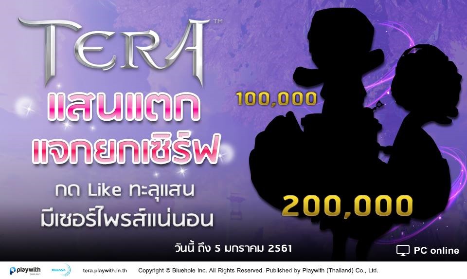 * สามารถเข้าร่วมกิจกรรมกด Like หน้าแฟนเพจ TERA Online Thailand ได้ที่ *