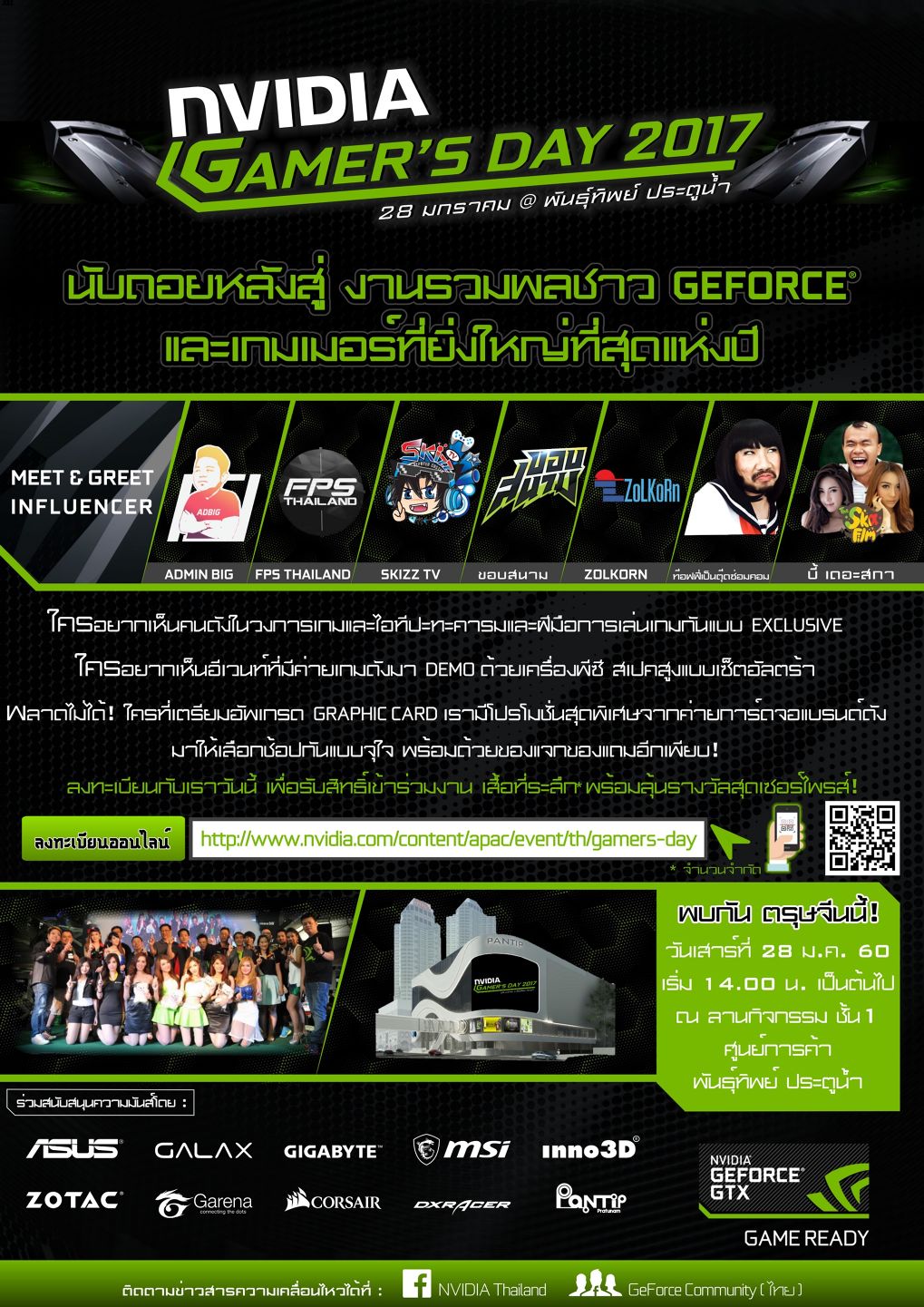 รวมพลชาว GeForce® กับงาน NVIDIA GAMER’S DAY 2017 พบกัน ตรุษจีนนี้ !! 28 มกราคม 2560 ที่พันธุ์ทิพย์ ประตูน้ำ