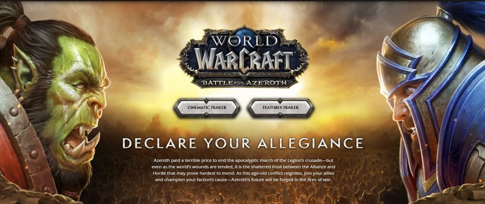 - Battle for Azeroth : สงครามระหว่าง Horde และ the Allianc ผู้เล่นจะได้พบกับพันธมิตรใหม่ และ การข่งขันแบบใหม่