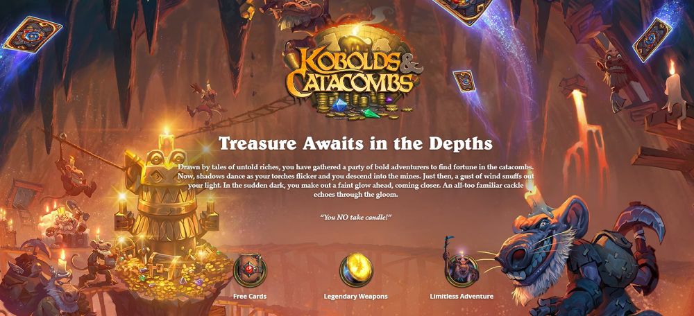 - Kobolds & Catacombs : ในเดือนธนวาคมที่กำลังจะมาถึงนี้จะมีการอัพเดตครั้งใหญ่ทั้ง dungeons beneath Azeroth, และการ์ดใหม่ให้เลือกสะสมถึง 135 ใบ