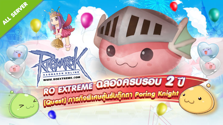 [Quest-ingame] ภารกิจพิเศษเควสฉลองครบรอบ 2 ปี ROEXTREME *เฉพาะเซิร์ฟเวอร์ไทย* (Coming Soon)► เทศกาลแห่งการเฉลิมฉลองเริ่มต้นขึ้นแล้ว! พบกับภารกิจสุดพิเศษ ลุ้นรับคอสตูมแรร์ไอเทม Costume Rolf Von Gigue 666 , Costume Pink Cupid Wing พร้อมค่าประสบการณ์ และ พิเศษสุดๆ กับของรางวัลพรีเมี่ยมแสนน่ารัก ตุ๊กตา Poring Knight Limited Edition ลิขสิทธิ์เฉพาะ RO Extreme ของรางวัลมีจำนวนจำกัด! กิจกรรมนี้เข้าร่วมทุกเซิร์ฟเวอร์ Revo Classic (Thor, Loki, Valkyrie) / Jellopy / Asgard