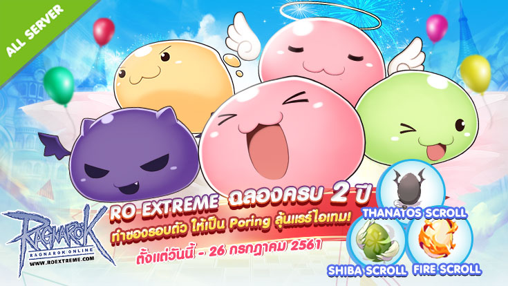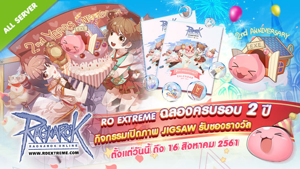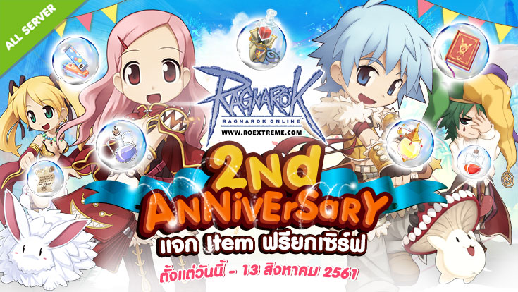 ฉลองครบรอบ 2 ปี กับ Ragnarok Extreme ขอตอบแทนผู้เล่นจากใจ ด้วยขบวนกิจกรรมแสนสนุกมากมาย พร้อมไอเทมจัดเต็ม! เข้ามาร่วมสนุกกับเทศกาลแห่งการเฉลิมฉลองนี้กันได้ทุกเซิร์ฟเวอร์ ตั้งแต่วันนี้ – 13 สิงหาคม 2561