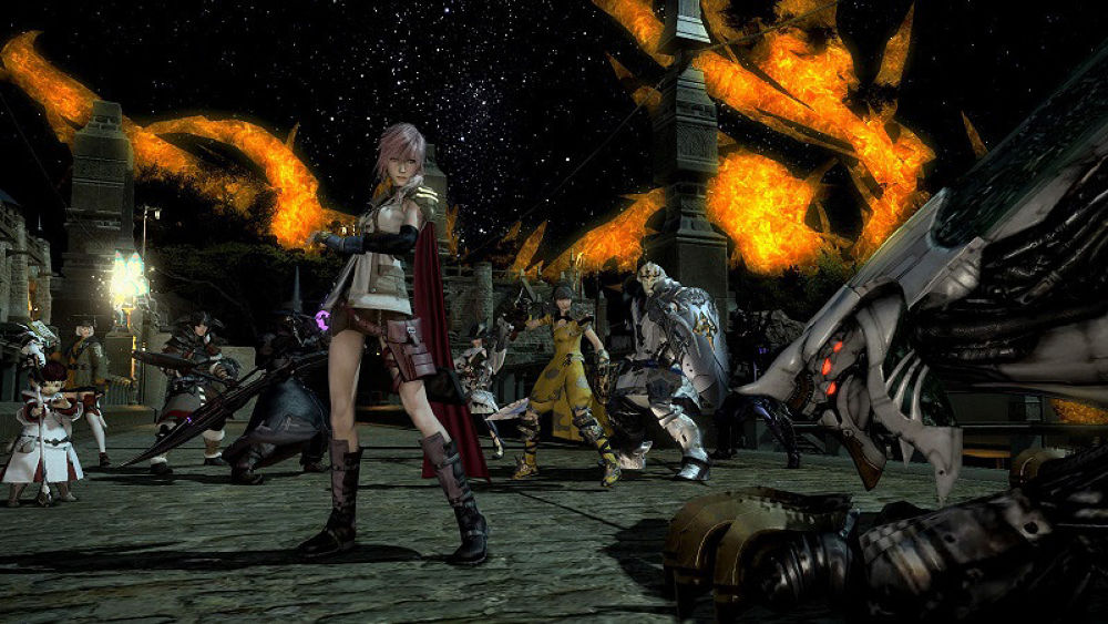 หลังจาก Final Fantasy XIII วางจำหน่ายในปี 2009 ไปได้ไม่นาน ค่ายเหลี่ยมจึงใช้โอกาสนี้จัดงาน "Lightning Strikes" อีเว้นท์โคลาโบร่วมกับ Final Fantasy XIV Online ที่พึ่งเปิดให้บริการแรกเริ่มในปี 2010 ออกเดินทางร่วมผจญภัยไปกับเจ๊เครียด Lightning ที่ถูกส่งมาภารกิจบางอย่างในดินแดน Eorzea พร้อมกับเพิ่มเพลงประกอบของเธออย่าง Blinded By Light และ Saber's Edge อีกด้วย ช่างน่าเสียดายที่เพื่อนๆ ไม่มีโอกาสได้สัมผัสอีเว้นท์ดังกล่าวเสียแล้วเจ้าชายถังแตก Noctis ตัวละครเอก Final Fantasy XV ปรากฏกาย