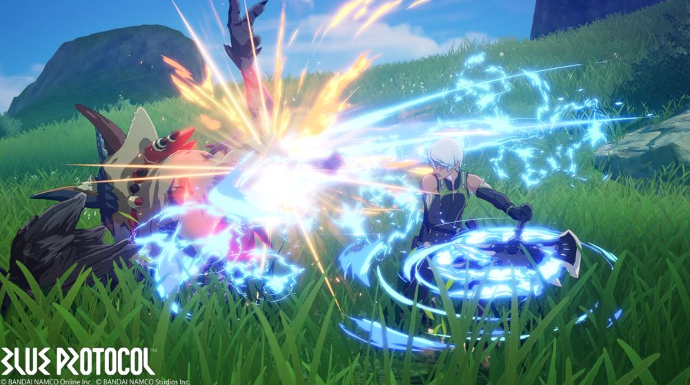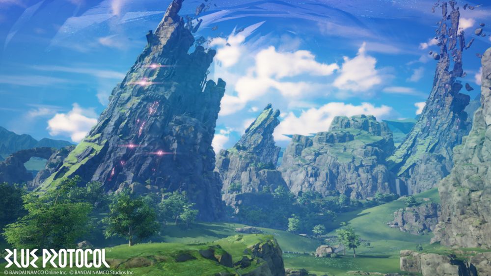 - Blue Protocol เป็นเกมที่จะให้ผู้เล่นรับเควสในเมืองหลัก และสามารถออกไปผจญภัยตีมอนทำภารกิจได้อย่างอิสระในโลก Open World เต็มไปด้วยหญ้าเขียวขจีสุดสวยงาม