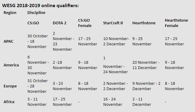 WESG หรือ World Electronic Sports Games จัดขึ้นครั้งแรกเมื่อเดือนเมษายน 2018 ซึ่งเมื่อ 2 ปีที่ผ่านมานั้นถือว่าได้รับการให้สนใจจากผู้คนทั่วโลกเป็นจำนวนมากเพราะเป็นรายการที่รวบรวมเหล่าตัวแทนทีมชาติเข้ามาแข่งขันชิงชัยกันในเกมต่างๆ ทำให้หลายประเทศจะได้เชียร์ทีมจากประเทศเดียวกันแบบภูมิใจ แถมมีเงินรางวัลให้กับเหล่านักกีฬาอีกเพียบเลยทีเดียว