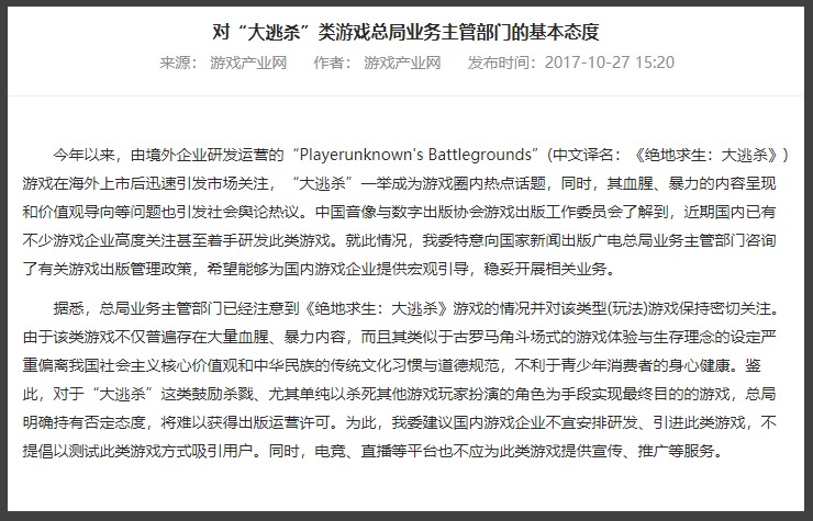 ย้อนกลับไปที่ประเทศจีนเองก็มีเกม Age of Wushu จากค่าย Snail Games ก็มีโหมด Battle Royal แบบ 50 Vs. 50 หรือเกมจากค่าย Perfect World และ ChangYou ก็มีโหมด Battle Royal แบบ 30 Vs. 30 เช่นเดียวกัน ซึ่งทั้งสองเกมก็ได้รับความนิยมจากเกมเมอร์แดนมังกรเป็นอย่างมาก ดังนั้นต่อให้รัฐบาลจีนทำการแบนตัวเกม PlayerUnknown's Battlegrounds มันก็ดูอาจจะสายเกินไปแล้วก็เป็นได้ เพราะตอนนี้มีผู้เล่นจากประเทศจีนจำนวนมากเข้าไปเล่นเกมนี้อย่างมหาศาล แต่ถ้ามันส่งผลกระทบมากก็อาจจะมีการแบนเกมนี้จริงๆ ก็ได้นะ