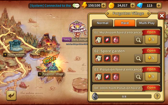 โหมดหลักที่เรียกว่า Story mode นั้น ผู้เล่นสามารถเล่นไปตามเนื้อเรื่อง ซึ่งจะมี Mission ระหว่างทางมากมายที่จะมอบรางวัลเป็นไอเทมต่างๆที่เป็นประโยชน์กับการพัฒนาตัวละครมากให้เรื่อยๆ โดยจะแบ่งความยากของ Dungeon เป็น 3 ระดับ คือ Story (ความยากปกติ), Hard (ความยากระดับสูง) และ Multiplay (ความยากพิเศษ)