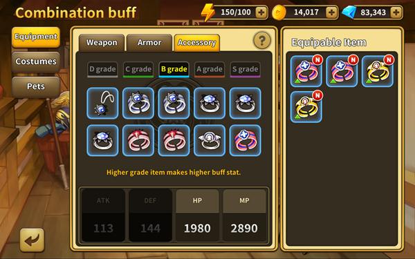 ไอเทมที่สามารถนำมาใส่ใน Combination buff ได้คือ อาวุธ ชุดเกราะ เครื่องประดับ และสัตว์เลี้ยง โดยใช้งานได้ตั้งแต่ Rank D ไปจนถึง Rank S ยิ่งใช้ของดียิ่งได้ Buff เยอะ จนท้ายที่สุดคงต้องเฉือนกันด้วยการสร้างไอเทมระดับ Top ใส่ Combination buff เพื่อ Status สูงสุดกันอย่างแน่นอน