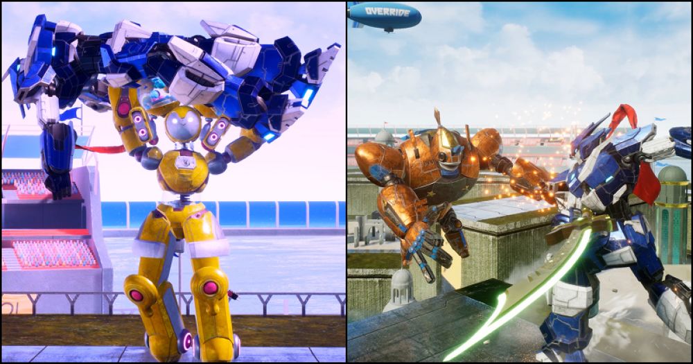 - Override 2 เป็นเกมที่เล่าเรื่องถึงโลกเคยถูกเอเลี่ยนบุกโจมตี แต่ก็ได้เหล่าหุ่นยนต์ยักษ์พิทักษ์เอาไว้ได้สำเร็จ ซึ่งหลังจากนั้น เหล่าหุ่นยนต์ยักษ์ก็ได้กลายเป็นความบันเทิงให้กับมนุษย์โลก จากการสร้างลีกประลองให้มาชิงแชมป์โลกกัน โดยแมตช์นึงจะมีหุ่นยนต์ยักษ์ได้สูงสุด 4 คน (หุ่นยนต์ยักษ์นั้นมีคนขับอยู่ข้างใน)