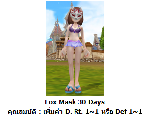 1. เพื่อนๆ ที่ส่งรูปเข้าประกวดทุกคนจะได้รับไอเทม Fox Mask 30 Days