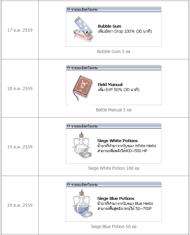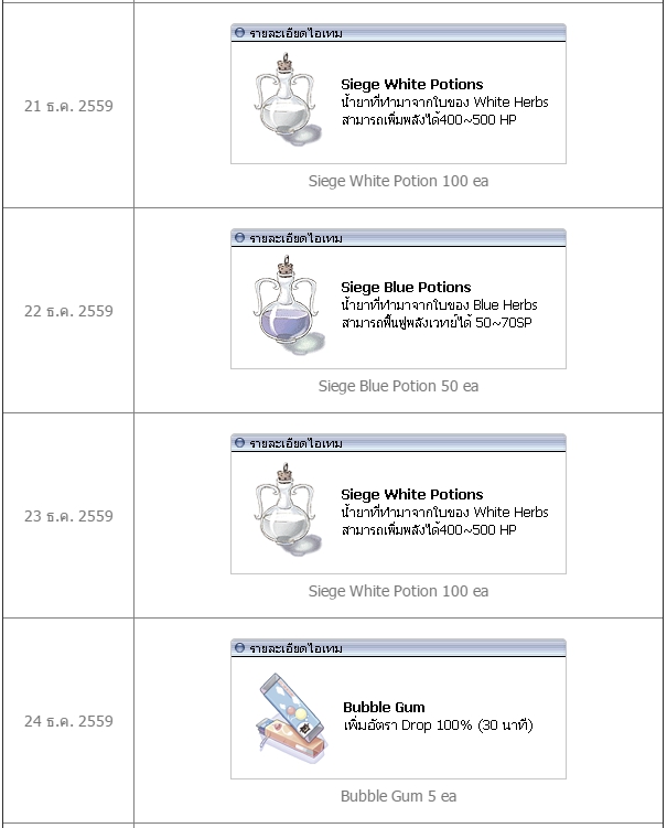 สามารถกดรับไอเทมได้ ID ละ 1 ครั้ง/วัน